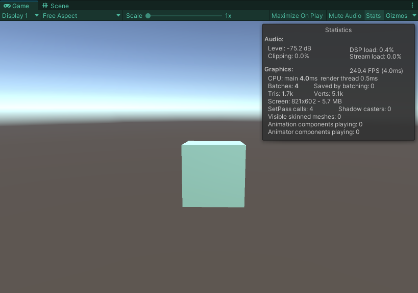 FPS는 Game 뷰에서 Stats를 클릭하면 볼 수 있는데,